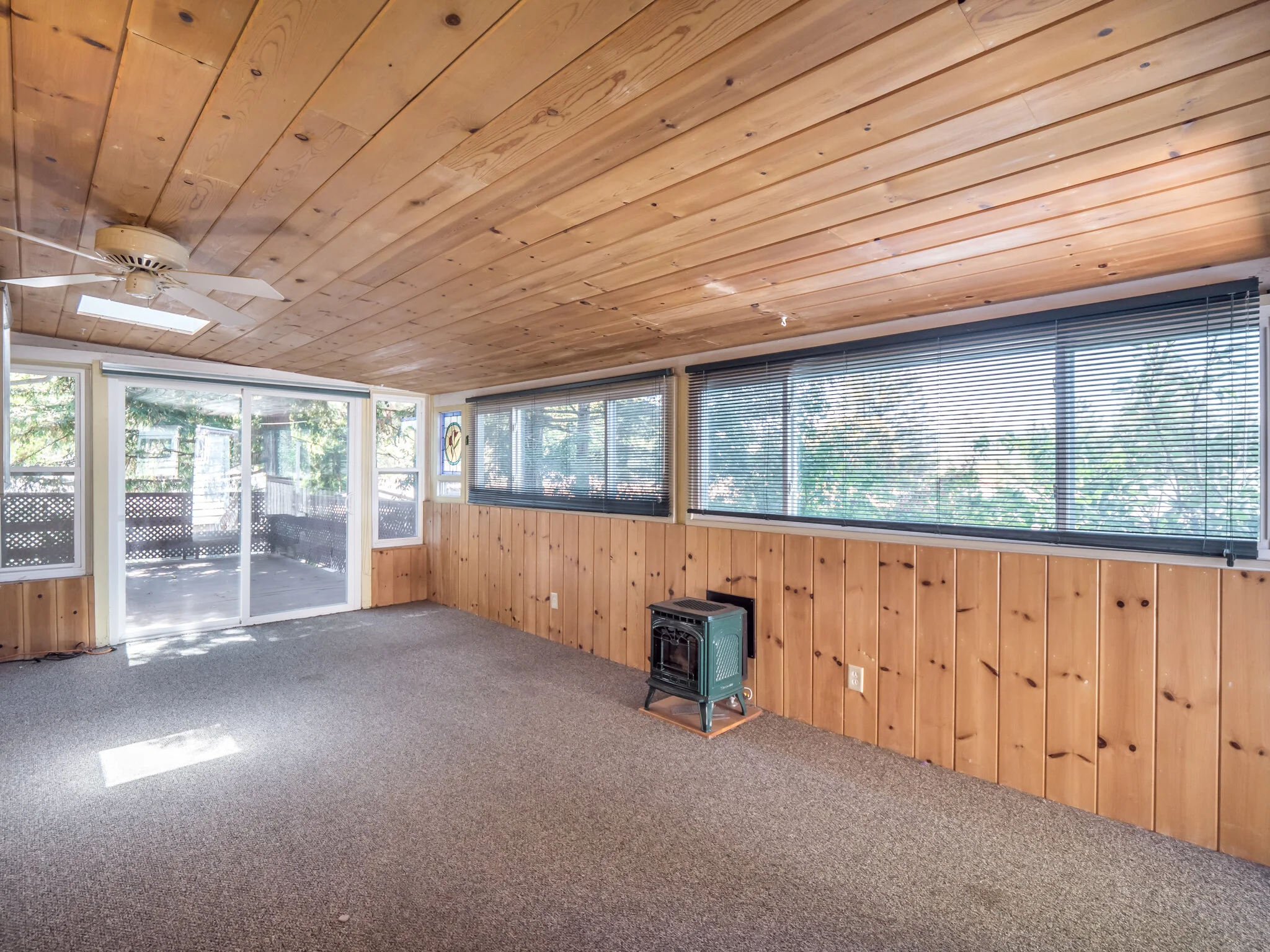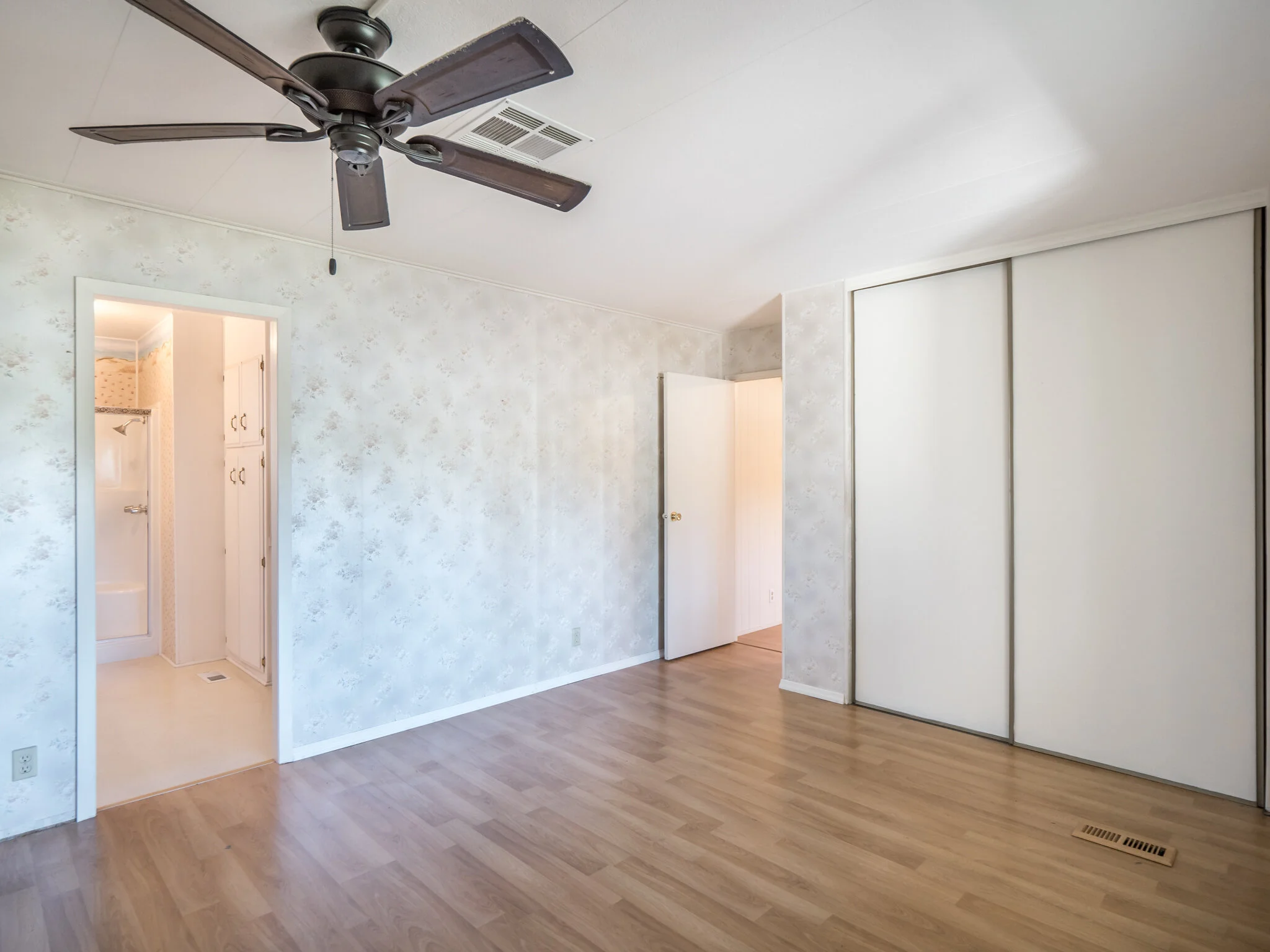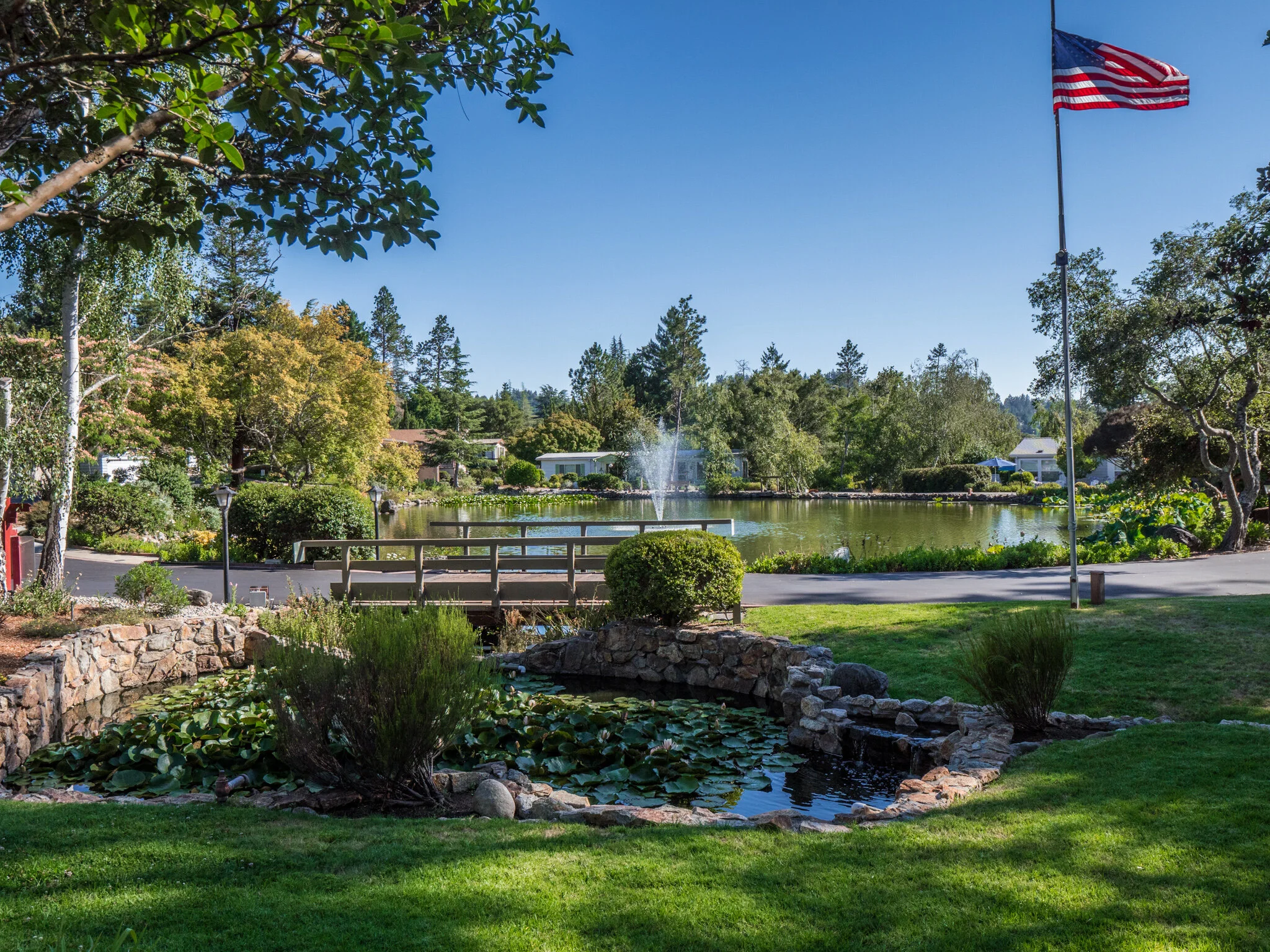 124 Azalea is located on a quiet court just past the South Lake. 2 bedroom, 2 bathroom 1976 VillaWest Home with 1440 square feet of living space and covered carport parking. Newer vinyl siding, double pane windows, and newer roof. An enclosed, all-season sunroom has a gas fireplace for the winter and access to a private “secret garden” deck. The Master Bathroom has been updated with an easy access, walk-in shower. This home comes with loads of storage - pantry, linen closets and cupboards, built-in hutch and a workshop space fit for a woodworker. Montevalle is a premier land owned 55/45+ unique planned community with one-of-a-kind amenities including walking paths around the ponds, lush landscaping, 2 pools, 2 spas, exercise room, and putting green. Lots of organized activities available in the art center, game room, shuffle board court, and club house. No high space rent fees. Land ownership with low $400/month HOA dues.